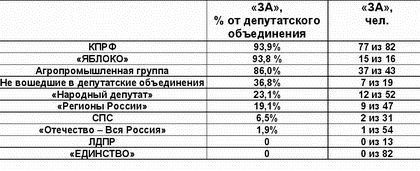 Депутаты проправительственных депутатских объединений («Единство», «Отечество – Вся Россия» и др.), а также фракций СПС и ЛДПР выступили против предложения Сергея Митрохина. Один из лидеров ЛДПР Алексей Митрофанов заявил, что «в нормальной демократической стране премьер-министр не отвечает за кочегарки» и лучше было бы по этому вопросу заслушать губернаторов и мэров. Сергей Митрохин ответил ему, что «в нормальной демократической стране зимой не замерзает 20 регионов, как это было у нас в прошлом году. Если проблема имеет такой масштаб, то отвечать за нее должен премьер, а не «стрелочники».