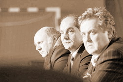 У Люмета, напомним, не исключалось, что сомневающегося присяжного остальным одиннадцати прислала некая высшая сила. У Михалкова и вовсе: Святой Дух сталкеровской компьютерной рябью сходит с картонной иконки на лоб герою артиста Маковецкого, вынуждая того расправить плечи и броситься в дебаты. И вот, когда усилиями осиянного Маковецкого (а также символической божьей птицы, в ключевой момент снайперски гадящей на Гармаша) процессуальная справедливость торжествует, довольные собой присяжные спешат к дверям (так, за вычетом, разумеется, гадящей птицы, заканчивается исходная пьеса Роуза), их нежным окриком останавливает сам Михалков. Его герой, весь фильм якобы кемаривший в кадре, оказывается отставным офицером ФСБ (или разведчиком, говорят, в телеверсии этот вопрос уточнят), усаживает всех обратно за стол в диспозиции «Тайной вечери» и с ласковой сталью в голосе (и почтенной, пусть и требующей некоторого насилия над сюжетом аргументацией) предлагает такое, что словами не передать. Опустим сюжетные детали (кто видел, те не забудут, а кто не видел — тем, право, стоит пойти и увидеть), но суть его сообщения в том, что рожденную в ходе двухчасового спора истину надо похоронить — из самых благородных, разумеется, побуждений. В этот момент становится ясно, почему «12» так похожи на «Гараж», к чему тюзовские парики на половине артистов и клоунские репризы. Михалкову противен предмет, обсуждаемый в фильме. Присяжные, их жалкие поиски правды, их мелкие моральные метания — лишь безобразно оттягивают тот момент, когда его собственный герой, махнув на болтунов-обывателей, отправится решать вопрос «другим способом».