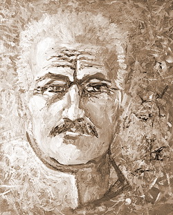 Дмитрий Шагин, наверное, для совсем непонятливых, кроме изображения своего лица, для надежности вывел большими печатными буквами прямо на холсте: «ШАГИН». Он мог этого и не делать. «Митька» Шагина можно узнать даже тогда, когда его лицо скрыто. На недавнем петербургском концерте в поддержку политзаключенных Шагин вышел на сцену не только в традиционной тельняшке, но и в балаклаве. Она, разумеется, была в полоску.